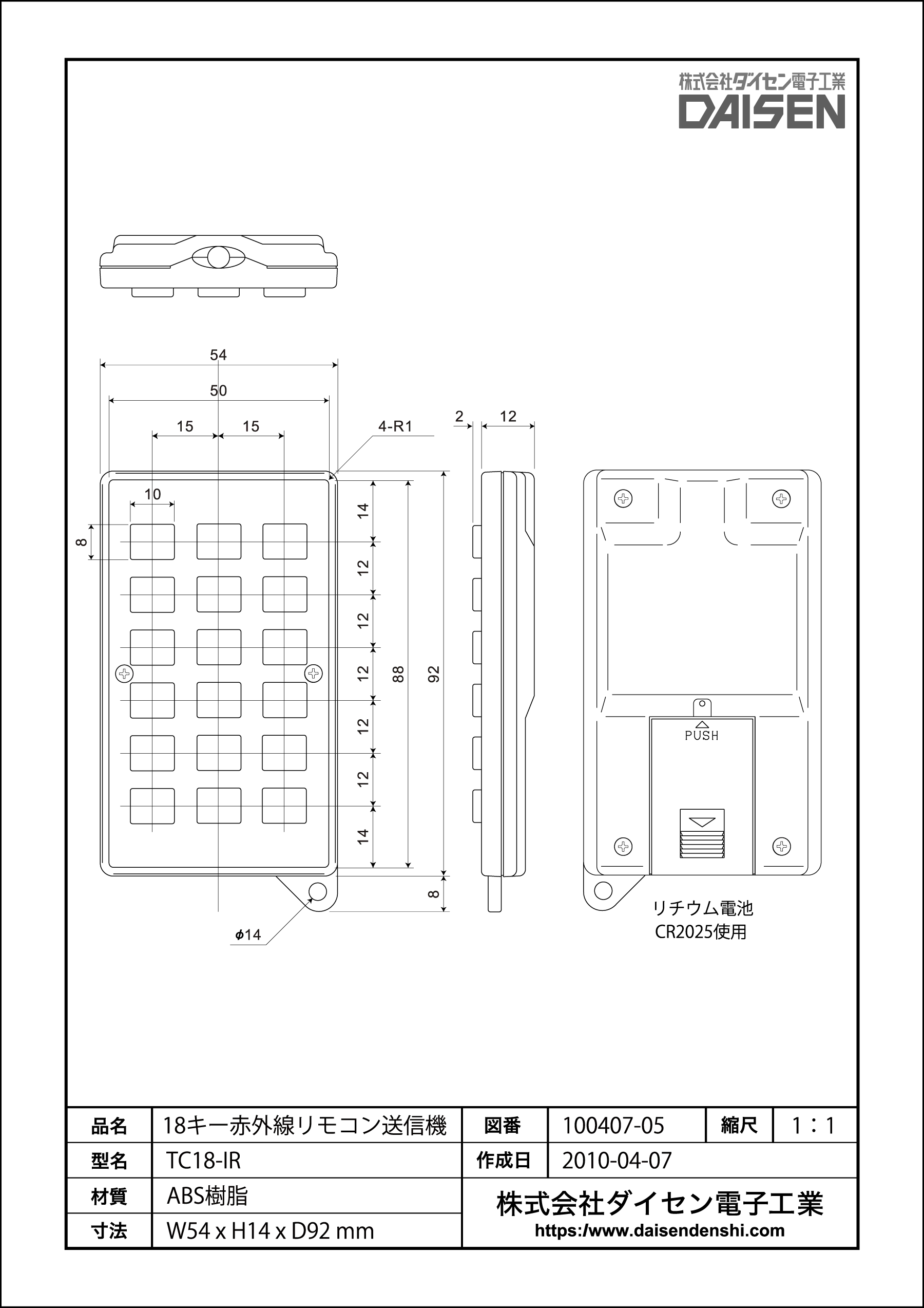 48キー赤外線リモコン