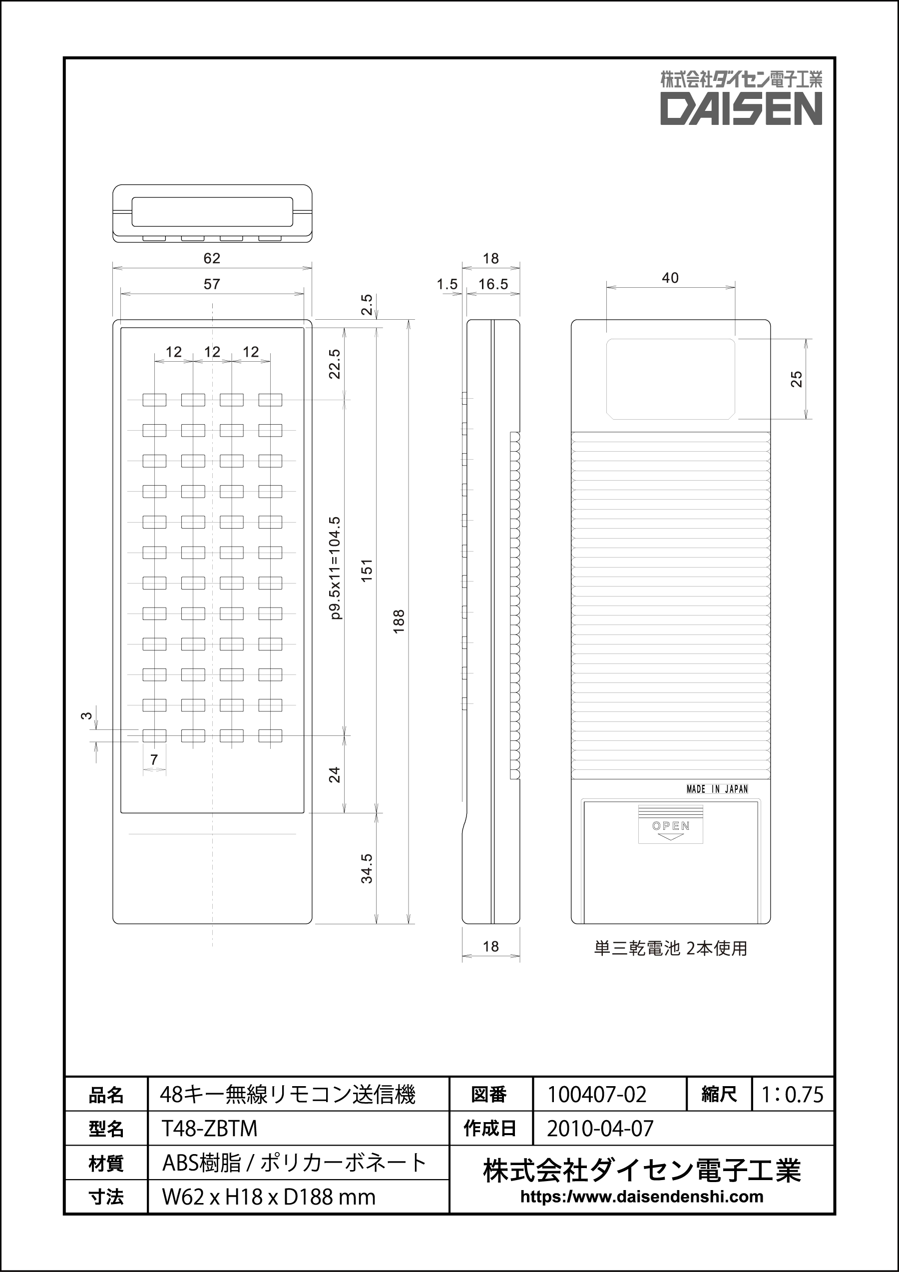 70キー無線リモコン